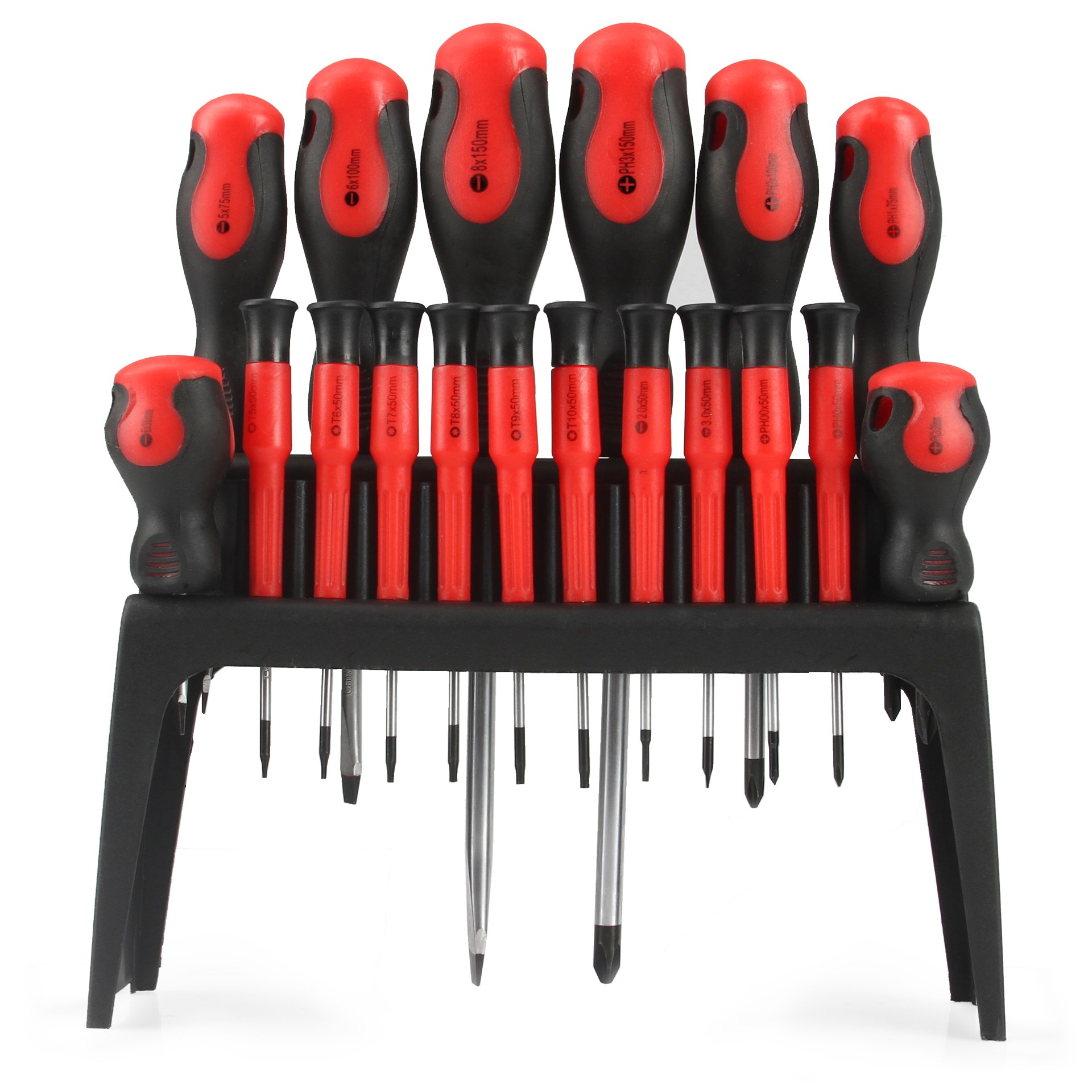 Vďaka magnetickým hrotom a ergonomickým rukovätiam je práca jednoduchšia a pohodlnejšia. Sada obsahuje ploché, krížové a TORX skrutkovače v rôznych veľkostiach pre všestranné použitie.