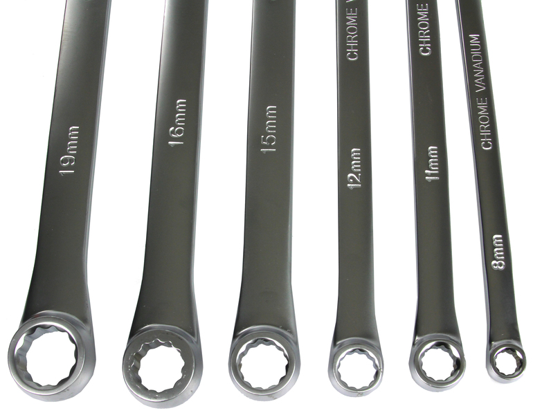 ✅ Predĺžené očkové vidlicové kľúče – Ideálne na použitie v stiesnených priestoroch a ťažko prístupných miestach.