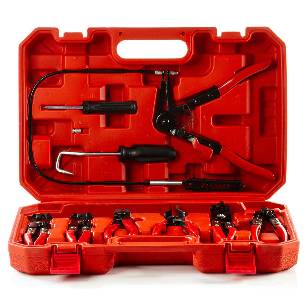 ✅ 9-dielna sada – Obsahuje kliešte a náradie na rôzne typy hadicových spôn, ideálne pre demontáž a montáž v automobiloch.