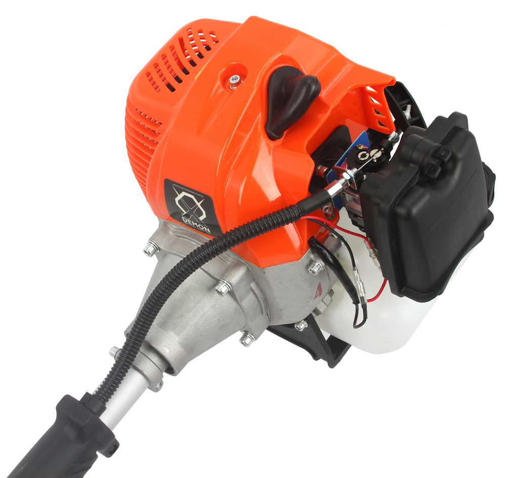 Krovinorez je vybavený odstredivou spojkou, ktorá bráni otáčaniu hlavy pri voľnobehu, a špeciálnym krytom uhlového kolesa, ktorý zabraňuje zamotaniu trávy a nečistôt. Ergonomická rukoväť s možnosťou otáčania umožňuje komfortné a presné ovládanie aj v ťažko dostupných miestach.
