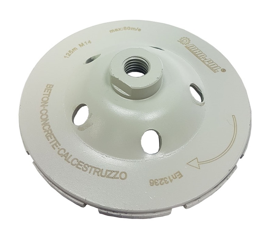 Diamantový kotúč MAR-POL M08787 SEGMENT s priemerom 125 mm, závitom M14 a výškou segmentu 5 mm, určený na brúsenie a vyhladzovanie kameňa, betónu a ďalších materiálov.