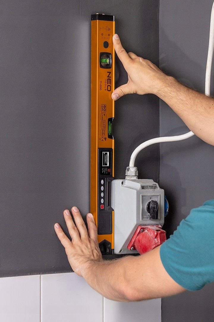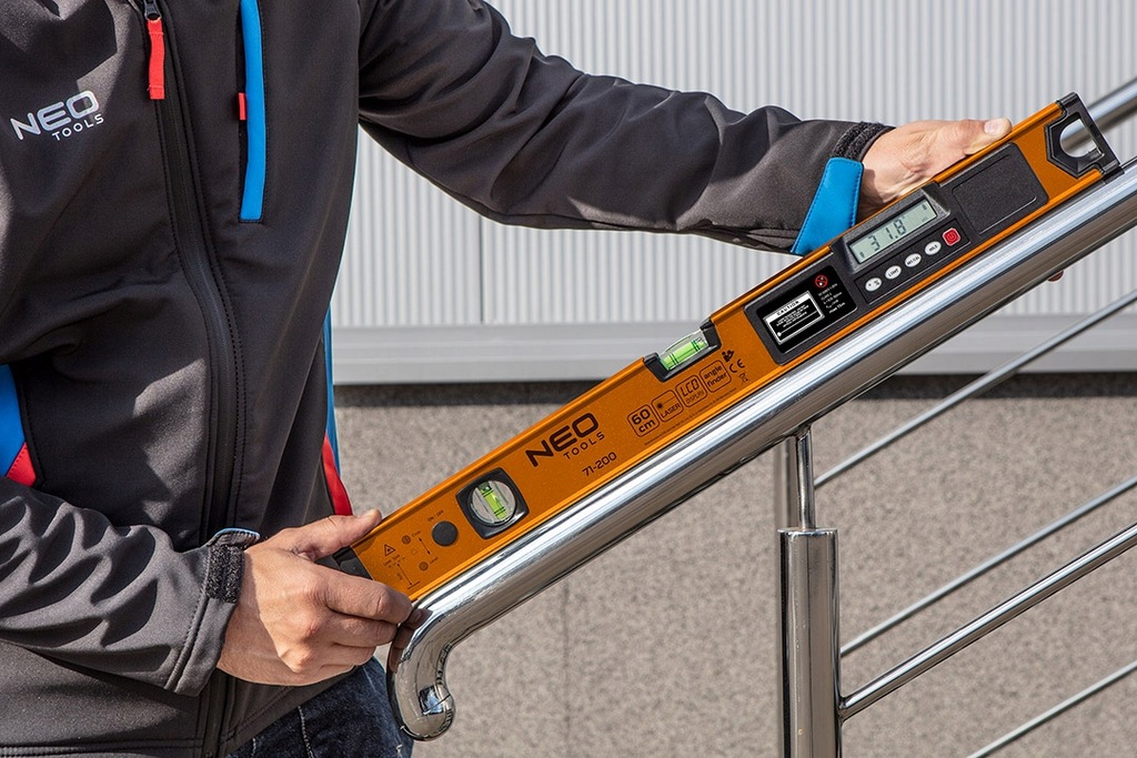 Vodováha s dĺžkou 60 cm s elektronickým LCD NEO displejom je nepostrádateľným pomocníkom pri dokončovacích alebo renovačných prácach. Má tri režimy určovania: vertikálny, horizontálny a pravý uhol. Presnosť merania je +/- 3mm na vzdialenosť 10m Laser signalizuje meranie zvukom po dosiahnutí uhlov: 0° / 45° / 90°. Napájanie pomocou dvoch 1,5V AAA batérií.
