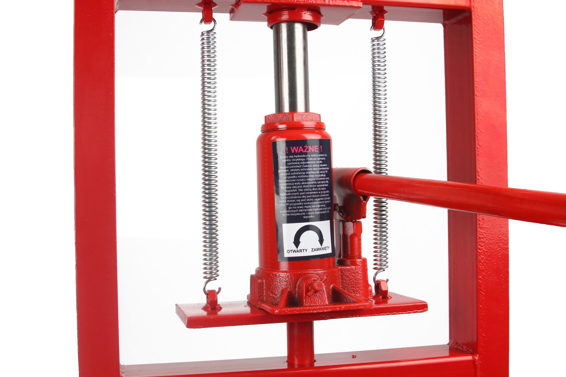 Disponuje výškovo nastaviteľnou pracovnou doskou so 4 úrovňami nastavenia, čo umožňuje jednoduché prispôsobenie lisu rôznym typom prác. Hydraulické čerpadlo znižuje námahu pri obsluhe a sťahovacie pružiny zabezpečujú automatický spätný chod piestu.