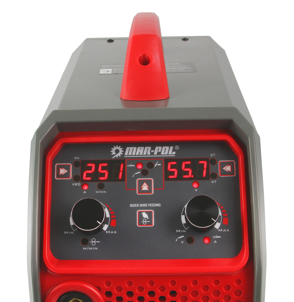 Invertorová zváračka Mar-Pol M79364 je 3V1 zváračka, ktorá umožňuje MIG/MAG, MMA, a TIG zváranie. Tento model je ľahký, kompaktný a výkonný, vďaka invertorovej technológii, ktorá zvyšuje účinnosť a znižuje spotrebu energie. Zváračka poskytuje vysokú stabilitu zváracieho prúdu, čo znamená dokonalé a čisté zvarové spoje.