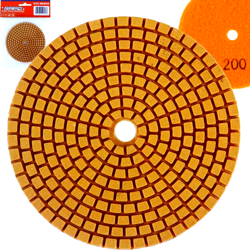 Diamantový brúsny kotúč Rapid M08855 je určený na presné brúsenie a vyhladzovanie tvrdých materiálov, ako sú dlažba, kameň, žula, mramor a keramika. Zrnitosť 200 zabezpečuje efektívne odstránenie nerovností a úpravu povrchov pred finálnym leštením.