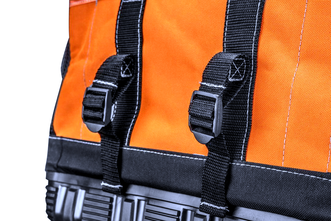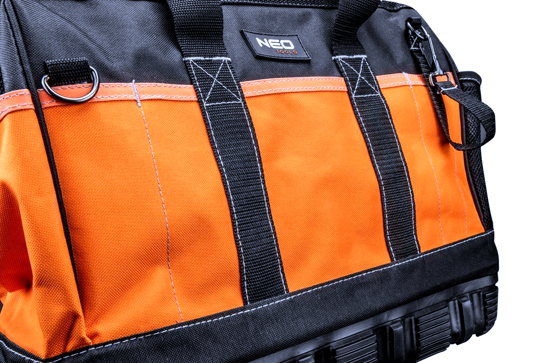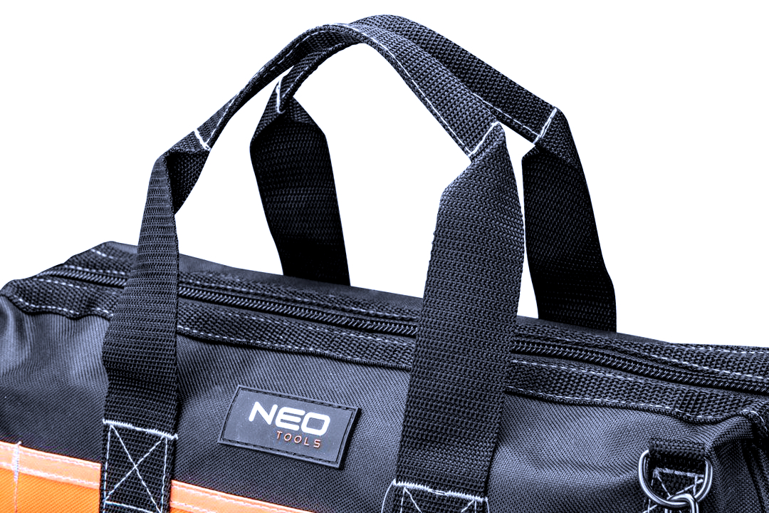 Taška na nástroje NEO 84-305 je praktická montážna taška vyrobená z odolného nylonu 600D, ktorý zaručuje dlhú životnosť a odolnosť voči opotrebovaniu. Táto taška má vystužené a vodeodolné dno, ktoré chráni obsah pred vlhkosťou a poškodením počas práce v náročných podmienkach. Taška je vybavená silnými držadlami a popruhom na rameno, čo umožňuje pohodlné nosenie a prenos náradia. Je ideálna pre domácich majstrov aj profesionálov, ktorí potrebujú spoľahlivé uskladnenie a prepravu nástrojov. Kompaktné rozmery umožňujú ľahkú manipuláciu a organizáciu náradia.