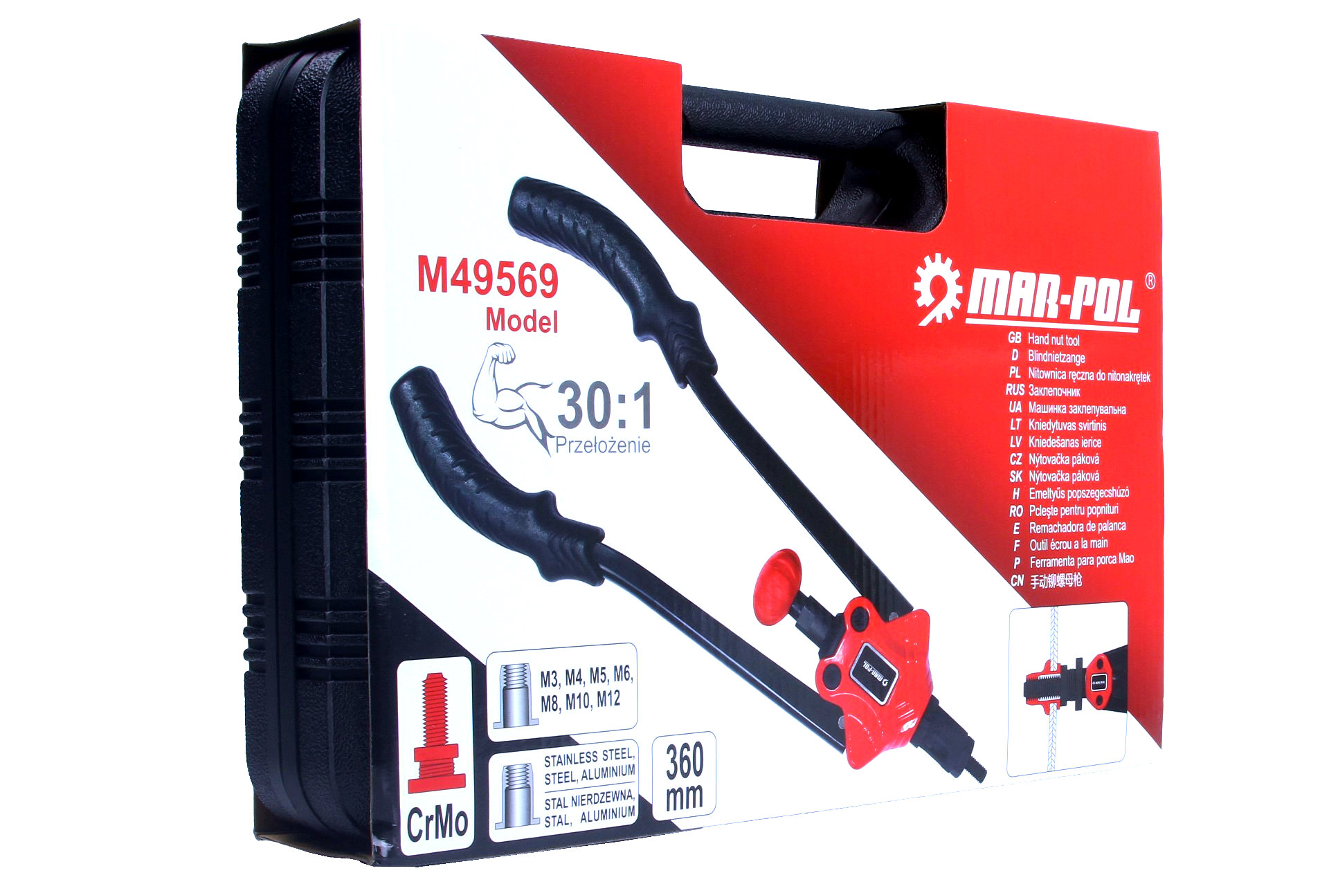 📝 Nitovacie kliešte s nitovacími hlavami M3, M4, M5, M6, M8, M10, M12 360 mm MAR-POL M49569 – Univerzálny nástroj na prácu so závitovými maticami