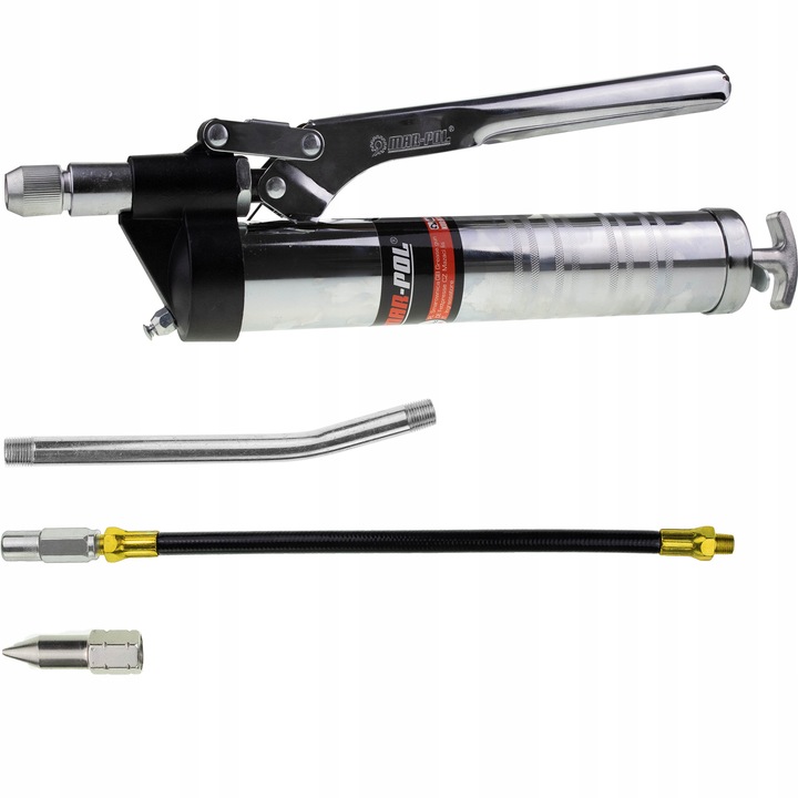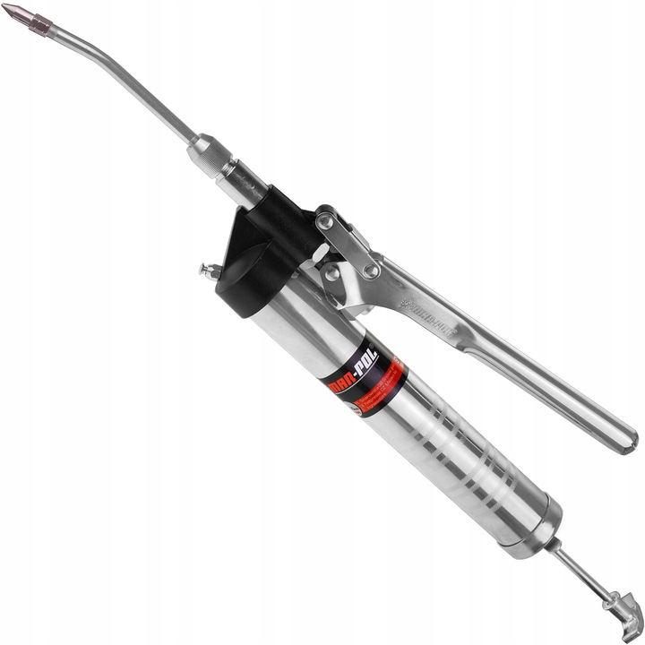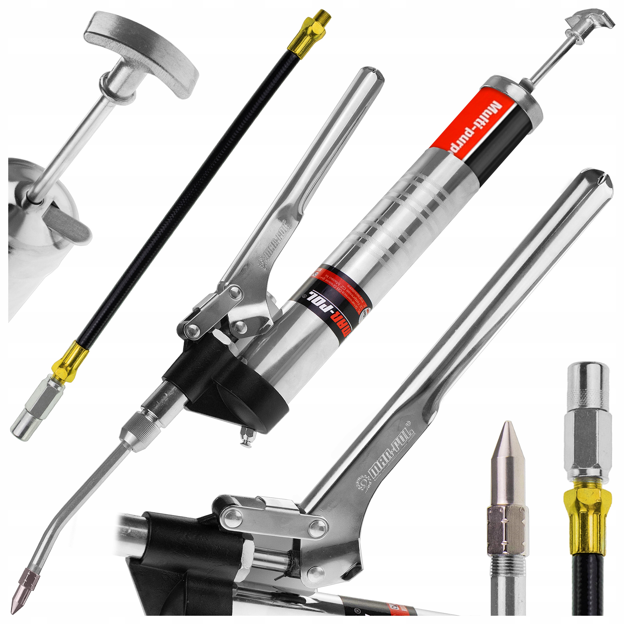 Robustná a spoľahlivá ručná mazacia pištoľ určená na mazanie mechanických častí v dielni, garáži aj servise. Vďaka krátkemu zdvihu páky a flexibilnej hadici je ideálna na prácu v stiesnených a ťažko prístupných priestoroch. Maznica je vybavená hliníkovou hlavou, protišmykovou rukoväťou, 4-čeľusťovým uchytením a odvzdušňovacím ventilom pre pohodlné a efektívne mazanie.
