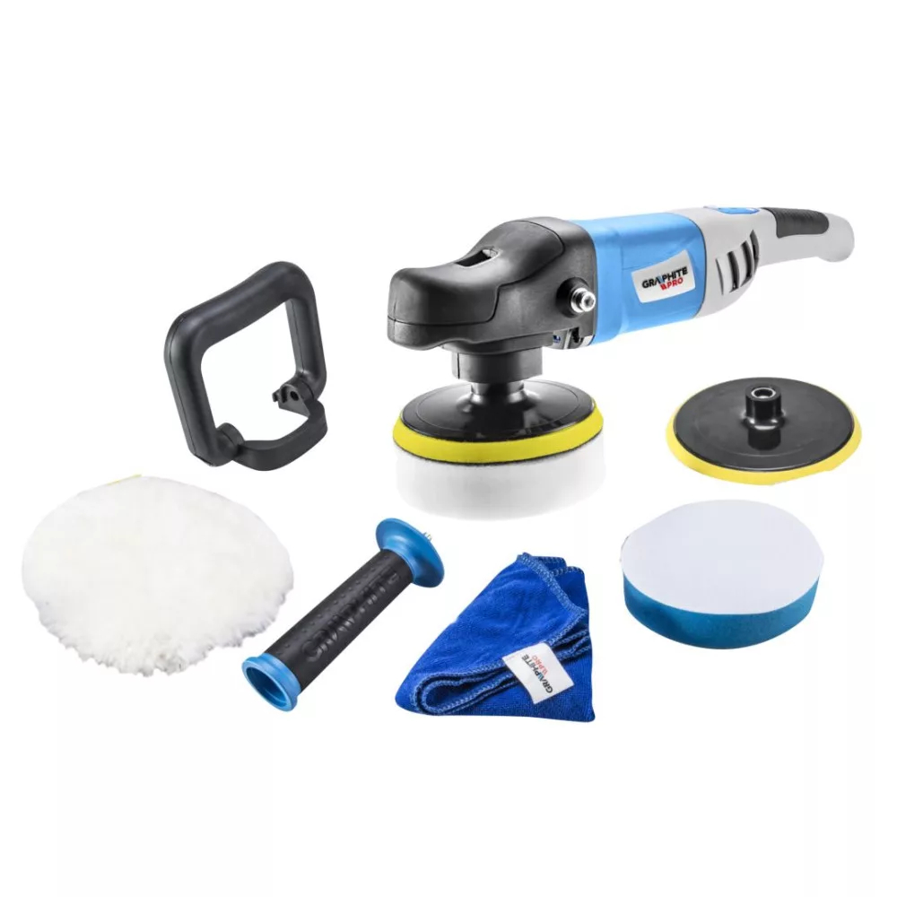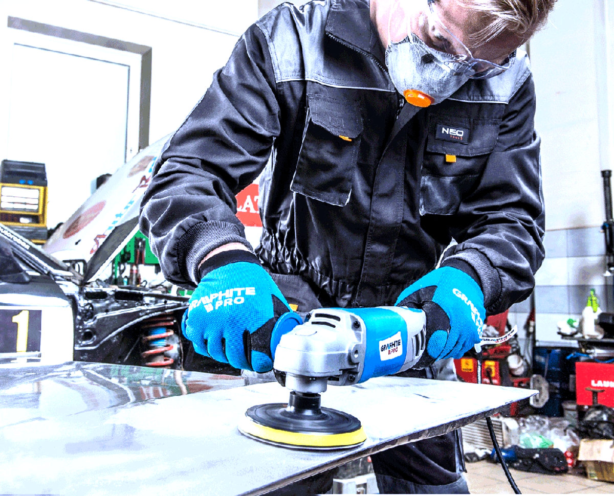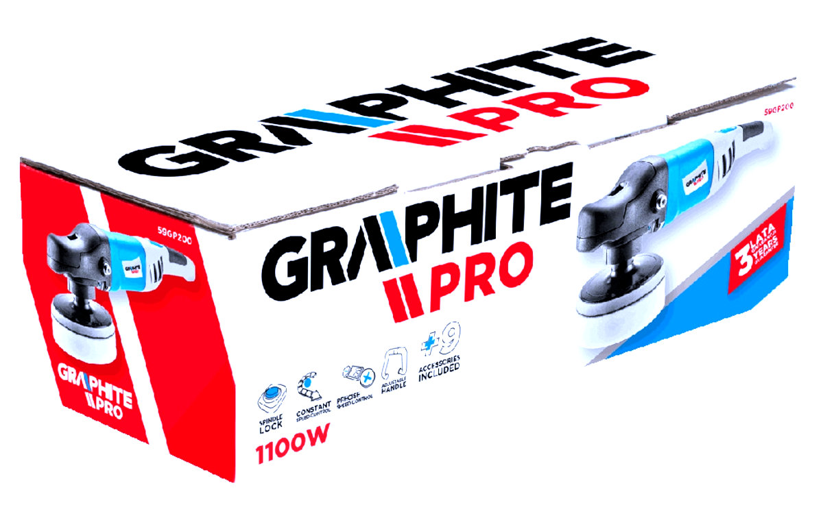 🔹 Profesionálna leštiaca brúska GRAPHITE 59GP200 s výkonom 1100 W je určená na karosárske, lakovnícke a renovačné práce. Ponúka stabilizáciu pri premenlivej záťaži, pozvoľný rozbeh, aretáciu a presné elektronické riadenie otáčok.