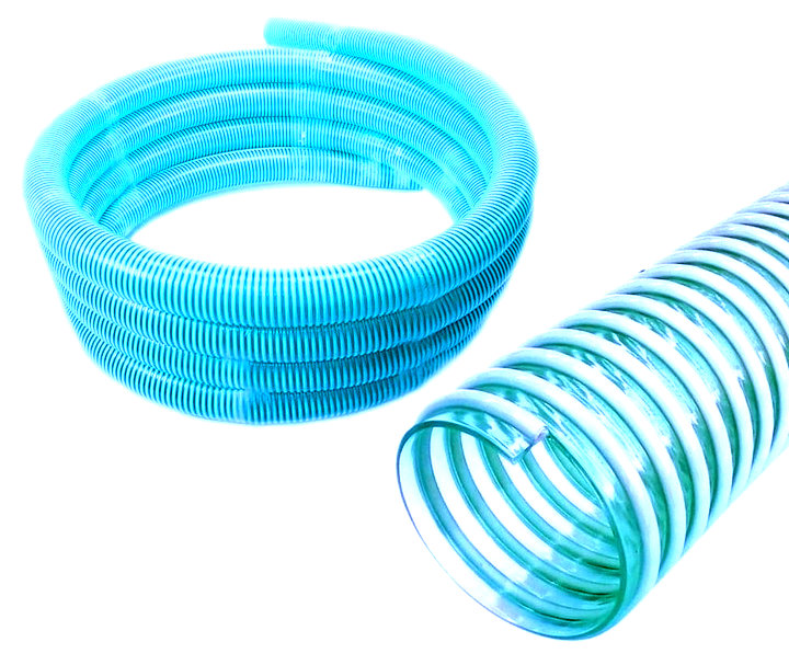 Hadica je transparentná s pevnou bielou PVC špirálou, ktorá zvyšuje jej pevnosť a stabilitu pri práci. Je ideálna na použitie s vodnými čerpadlami na nasávanie a výtlak vody, kalu a ľahkých chemikálií v poľnohospodárstve, priemysle a sanitárnych zariadeniach.