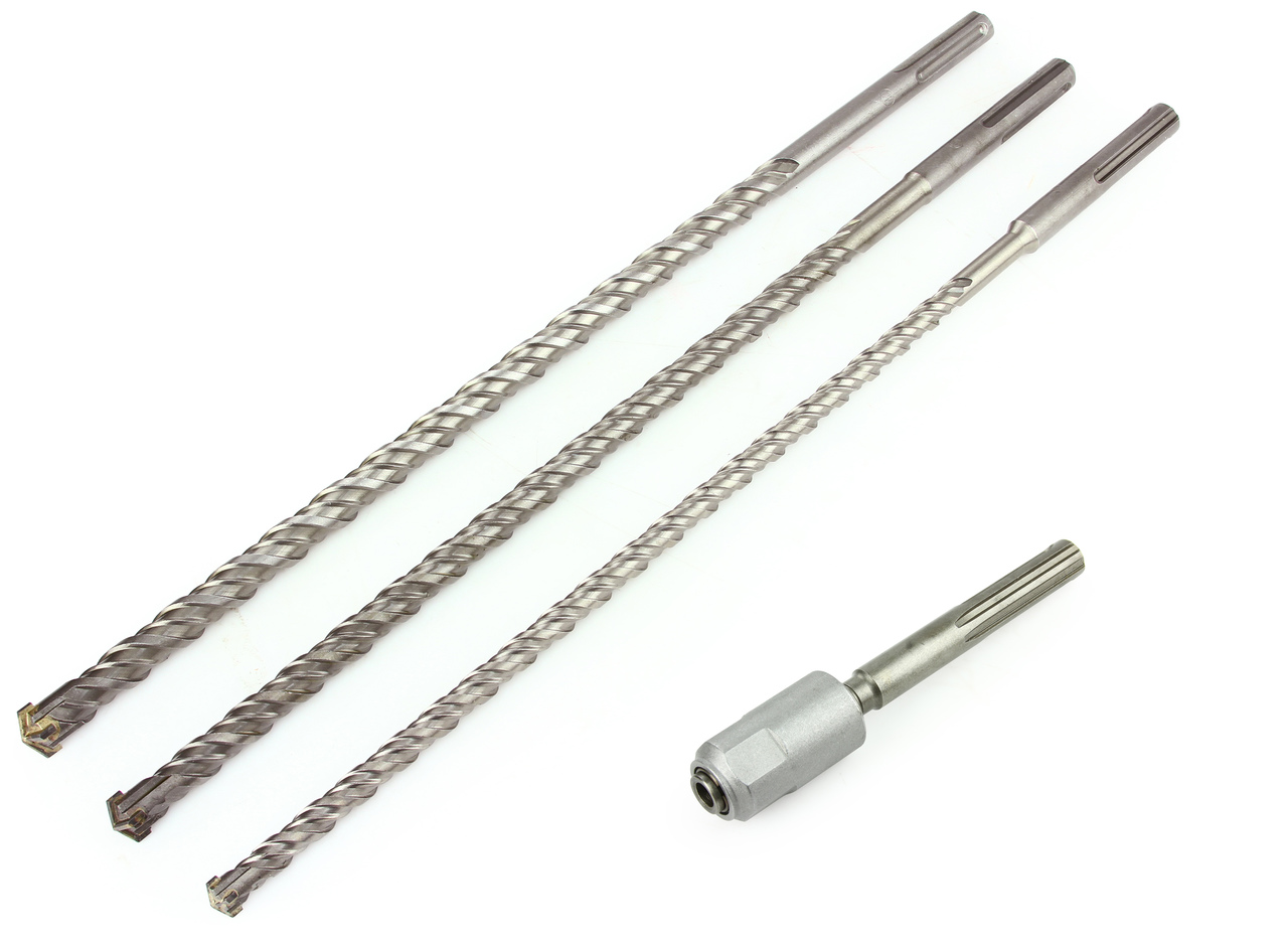Profesionálna sada vrtákov s karbidovými plátkami na vŕtanie do betónu, tehly, kameňa, glazúry a sadrokartónu. Uchytenie SDS MAX, priemery 16 mm, 20 mm, 22 mm, dĺžka 600 mm. Vhodná pre všetky typy vŕtačiek s uchytením SDS MAX.