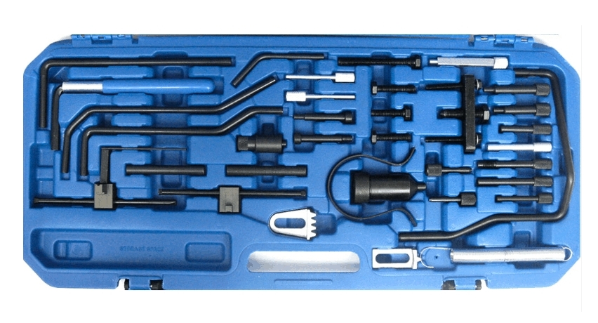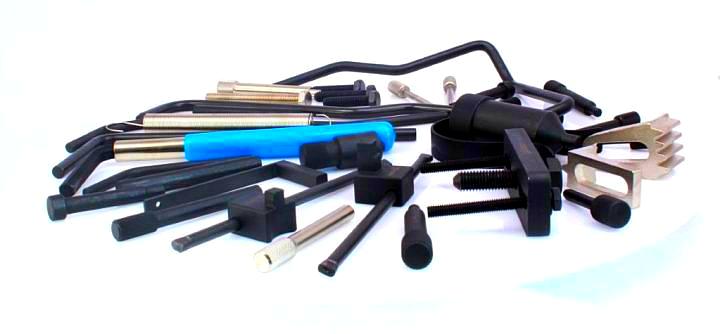 - Obsahuje rôzne typy časovacích a poistných nástrojov pre presnú prácu s rozvodmi