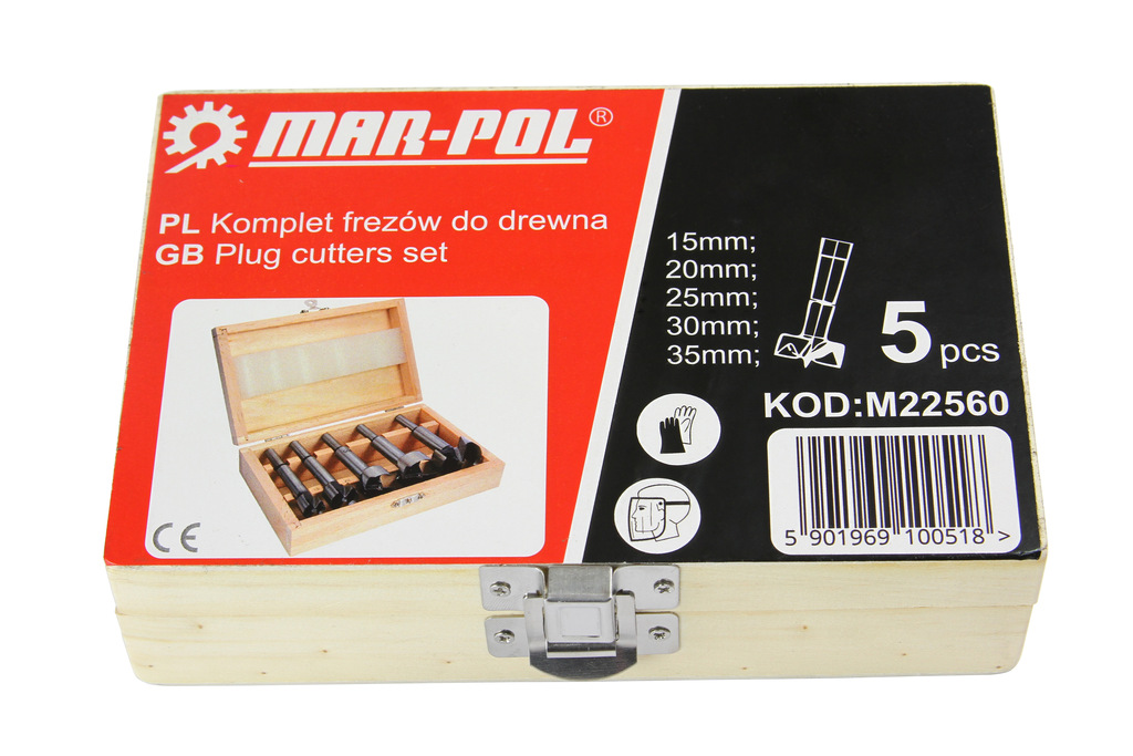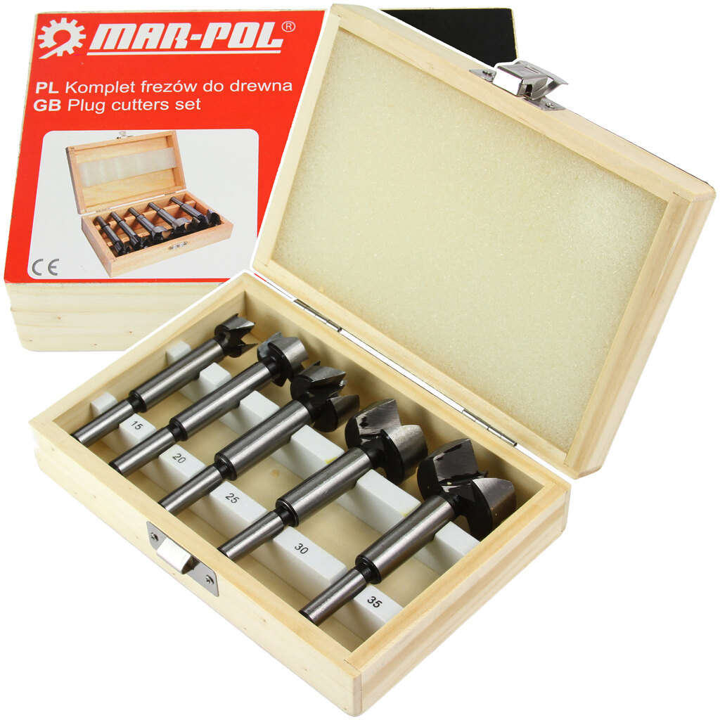 Sada sukovníkových vrtákov MAR-POL M22560 obsahuje 5 ks vrtákov (15-35 mm) na presné vŕtanie otvorov v masívnom dreve a dyhovaných doskách. Vhodné do všetkých vŕtačiek so skľučovadlom, s kvalitným rezom a čistými okrajmi.
