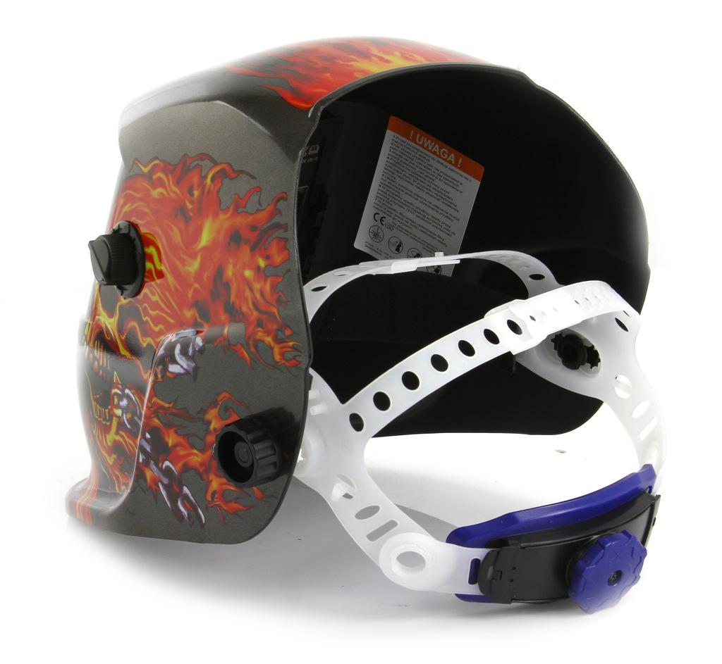 Samostmievacia zváracia kukla MAR-POL M87016 s agresívnym dizajnom "Lebka v plameňoch" je ideálnym riešením pre zváračov, ktorí hľadajú spoľahlivú ochranu očí, tváre a dýchacích ciest pri zváraní.