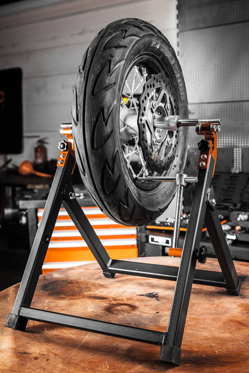✅ Demontujte koleso z vyvažovačky a namontujte ho späť na motocykel.