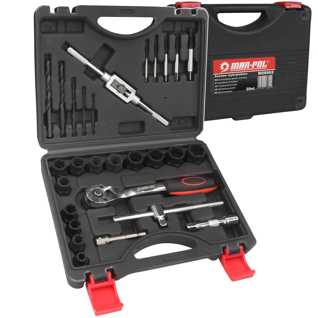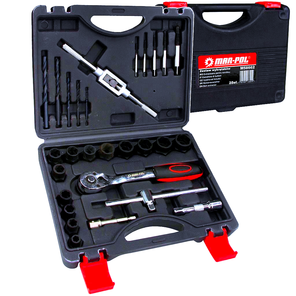 Sada nástavcov M58662 je ideálnym riešením pre mechanikov, domácich majstrov aj profesionálov, ktorí sa stretávajú s poškodenými, zhrdzavenými alebo zalomenými skrutkami.