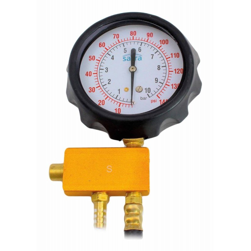 Tester tlaku paliva SATRA S-FP114 je špecializované zariadenie, ktoré umožňuje presnú diagnostiku palivového systému benzínových vozidiel. Pomocou manometra s rozsahom 0-10 bar (0-140 PSI) dokáže mechanik rýchlo a efektívne overiť výkon palivového čerpadla, zistiť úniky alebo zablokované palivové potrubie.