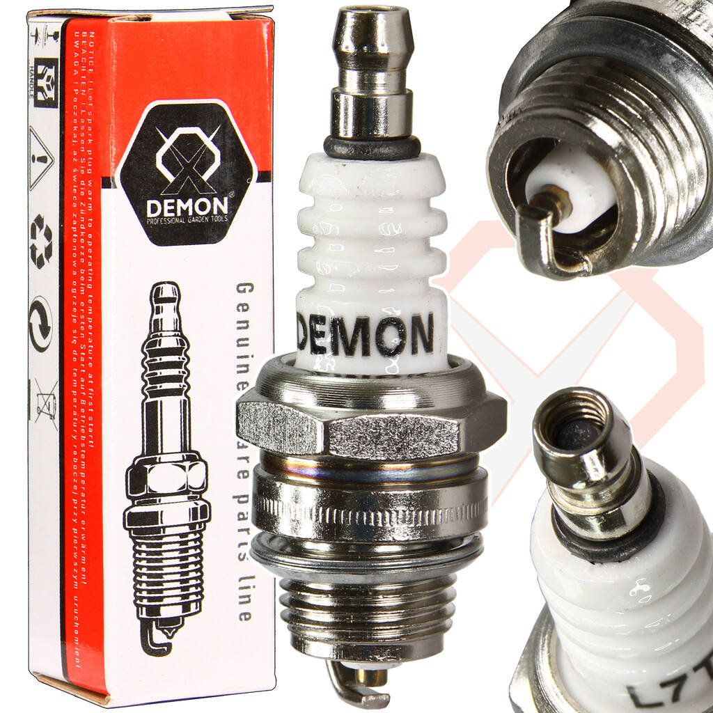 Zapaľovacia sviečka pre motorový krovinorez – DEMON M831072 – Spoľahlivá zapaľovacia sviečka typu L7T pre vysokootáčkové 2-taktné motory krovinorezov, kompatibilná s viacerými značkami.